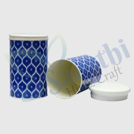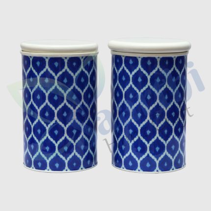 Designer Container/Jar Set : Meena Print Blue Design (Set Of Two)