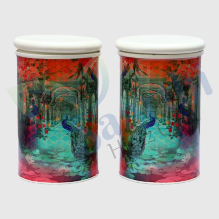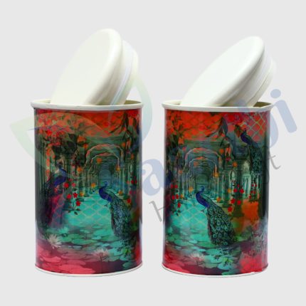 Designer Container/Jar Set : Meena Print Peacock Design (Set Of Two)