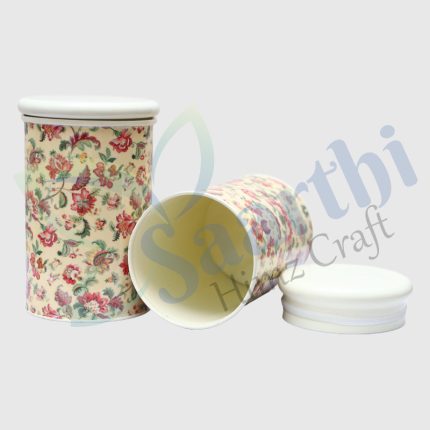 Designer Container/Jar Set : Meena Print Cream Colour Floral Design (Set Of Two)