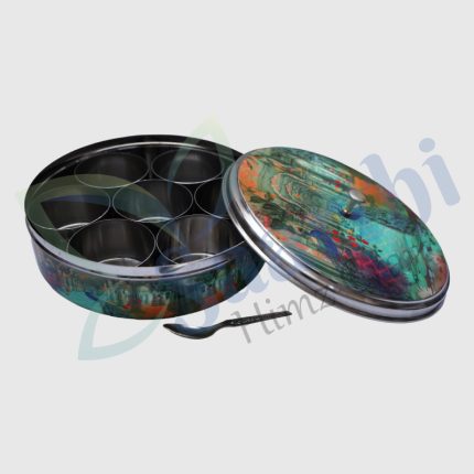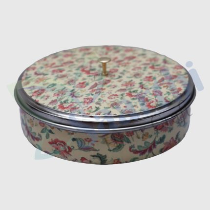 Masala Box : Steel Base With Meena Print Cream Colour Floral Design