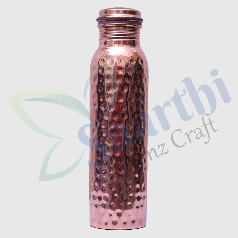 950ML in Capacity and 280gms in weight (approx)Joint Less Hammered Design Pure Copper Water Bottle with Lacquer coating outside and Silicon Washer for leak proof