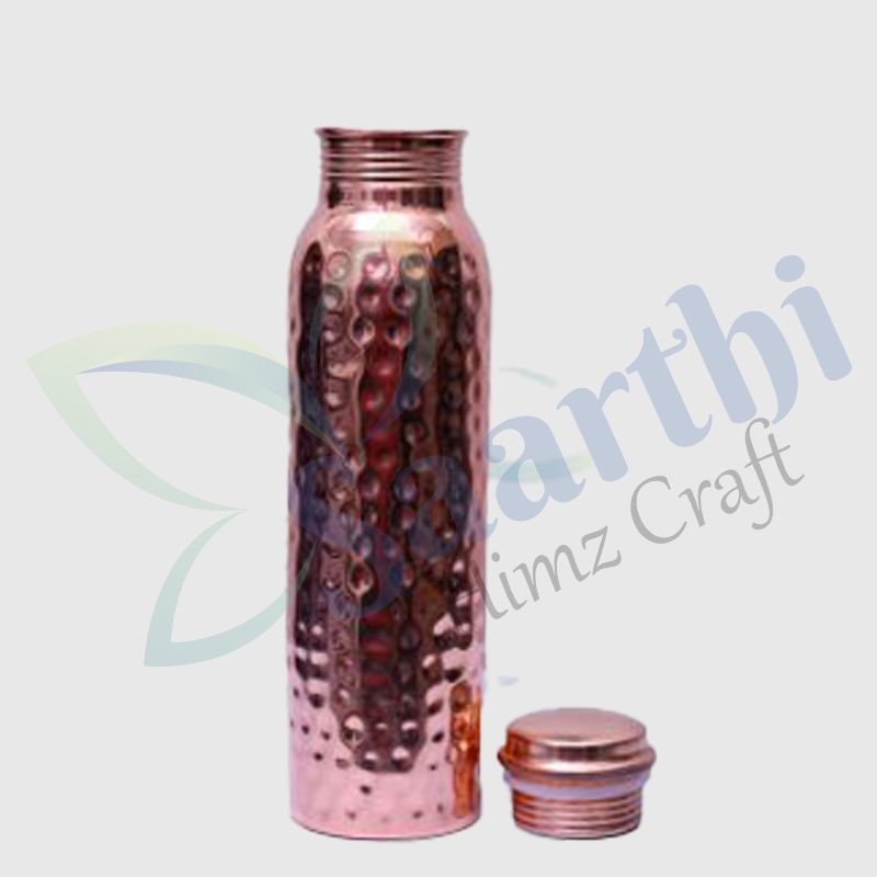 950ML in Capacity and 280gms in weight (approx)Joint Less Hammered Design Pure Copper Water Bottle with Lacquer coating outside and Silicon Washer for leak proof