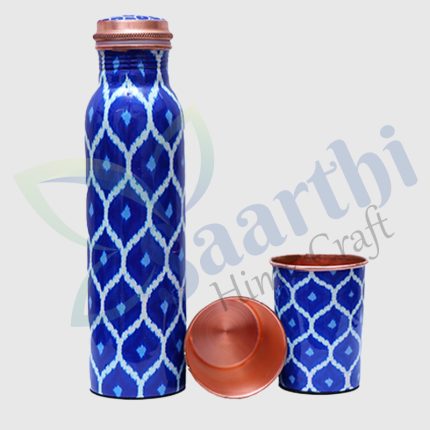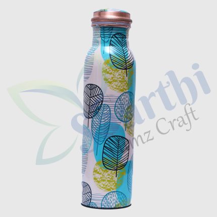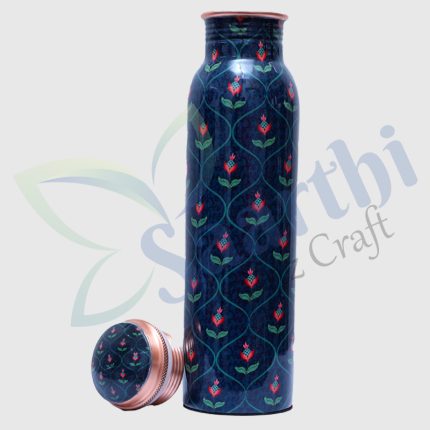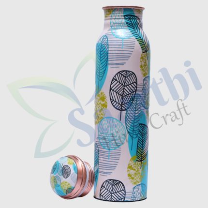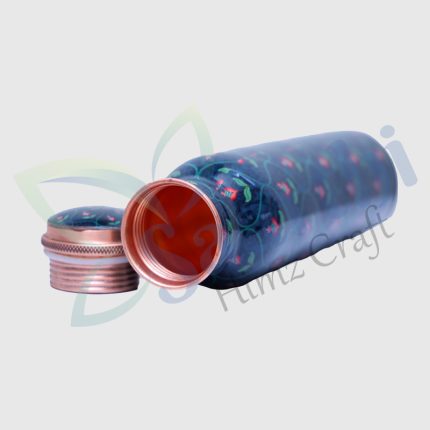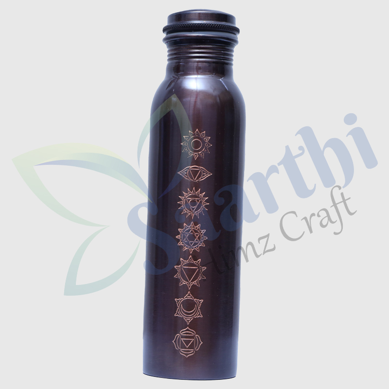 “950ML in Capacity and 280gms in weight (approx) Joint Less Printed 7 Chakra Design Pure Copper Water Bottle and Silicon Washer for leak proof.